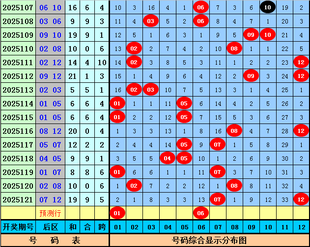 后离别析:上期后区开出1路+0路奖号:07和12,最近20期后区奖号012路比为11:13:16,2路号码走势较热,当今012路号码分别遗漏0期、0期、1期,本期后区防卫号码01、04、06、07、11,两码参考01、06。